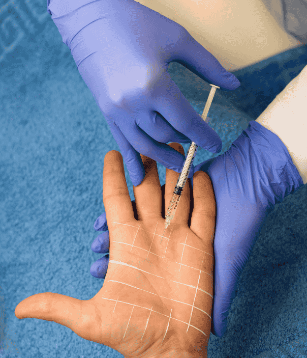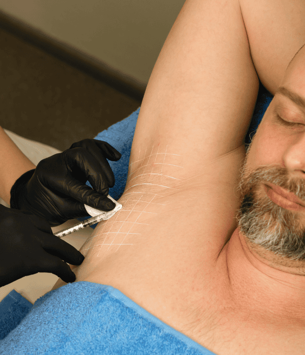 Botulinum toxin type A (Botox or Dysport) temporarily blocks the nerve signals that stimulate sweat glands. As a result, sweat production is significantly reduced. The injections are administered using ultra-fine needles for minimal discomfort.