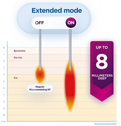 BTL Exion RF Microneedling utilizes single-pass fractional radiofrequency with AI-optimized delivery, allowing for deep tissue treatment up to 8mm without full needle insertion. The treatment targets dermal and subdermal layers to: